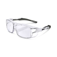 These safety spectacles feature a unique OTG lense shape providing a good fit for prescription glasses wearers. They have an ergonomic temple with ratched adjustment for comfortable fitting on all head shapes. A soft nose pad and anti scratch lens makes these a superior option for safety eyewear.